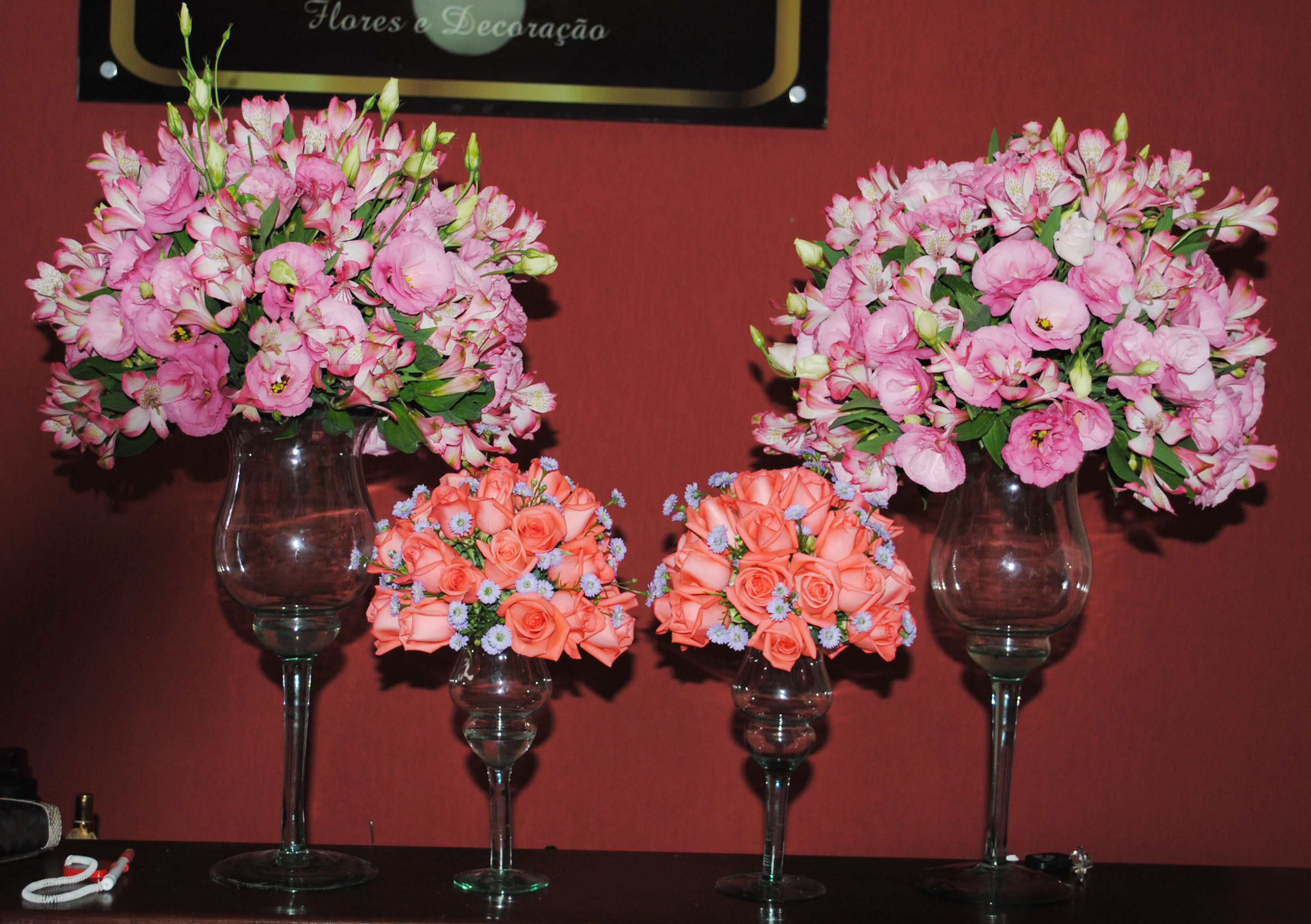As flores utilizadas são as mais variadas possíveis, para que a cada substituição você receba um arranjo exclusivo. As principais flores são: Antúrio, Gérbera, Flor-do-campo, Rosa, Boca-de-leão, Alstroeméria, Cravo, Orquídea, de acordo com a estação.